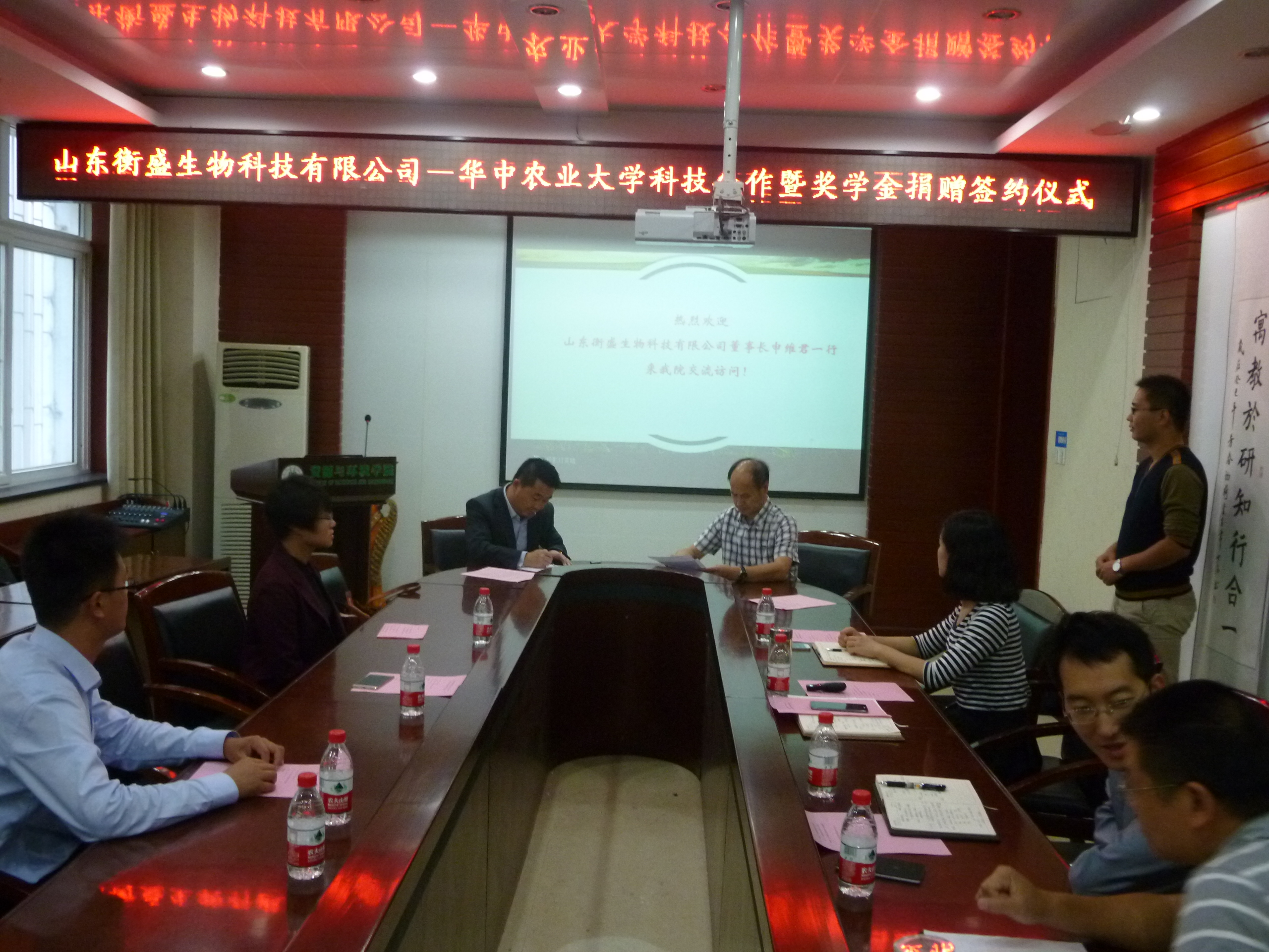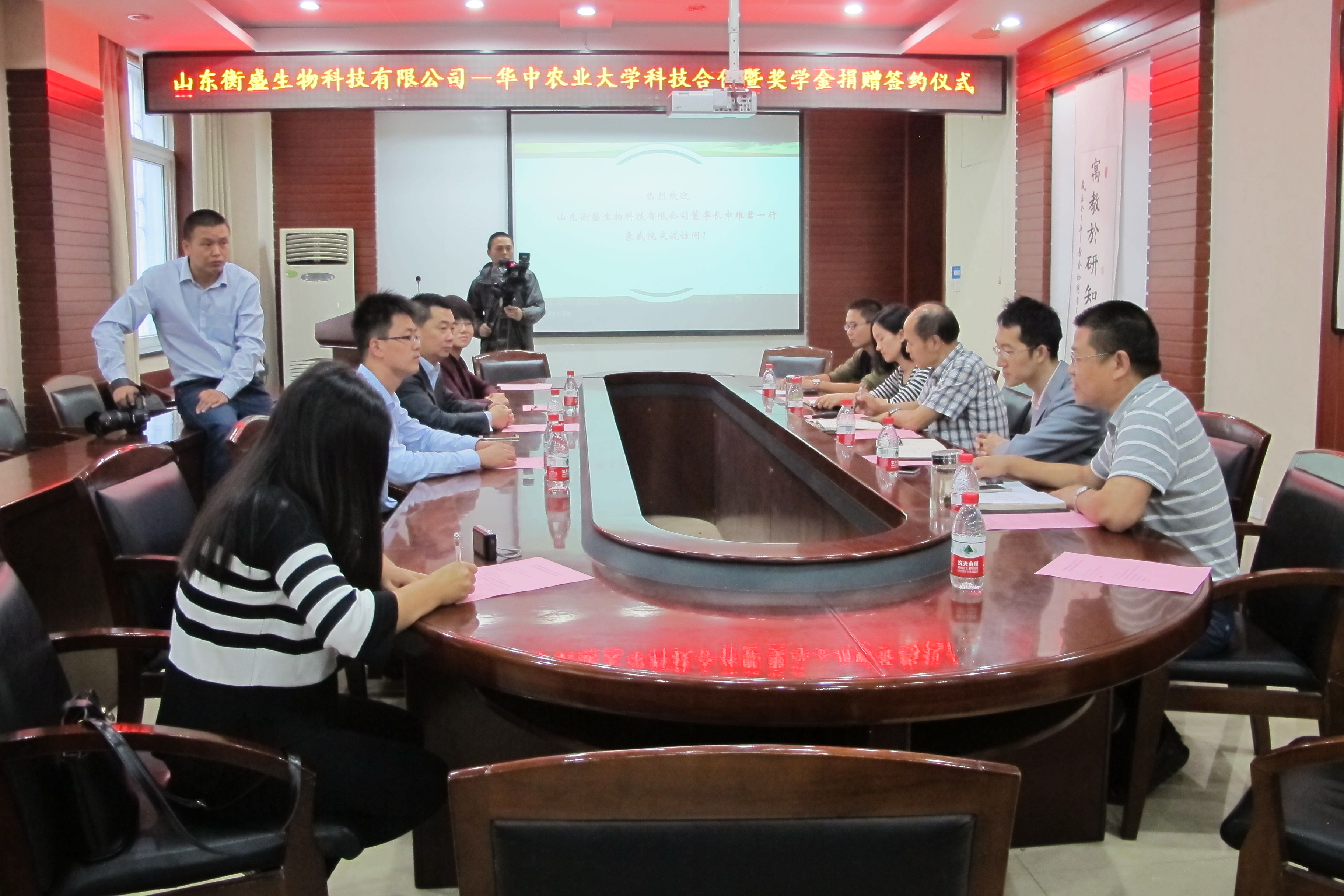 10月20日上午,山东衡盛董事长申维君先生一行3人来我院交流访问,并签订了校企科研合作暨奖学金捐赠协议。学院党委书记唐仁华、副院长唐铁军、土壤与植物营养系姜存仓教授、学院办公室主任庞湃、学院本科生团委书记黄彩薇等应邀出席了本次活动。签字仪式由学院党委书记唐仁华主持。
