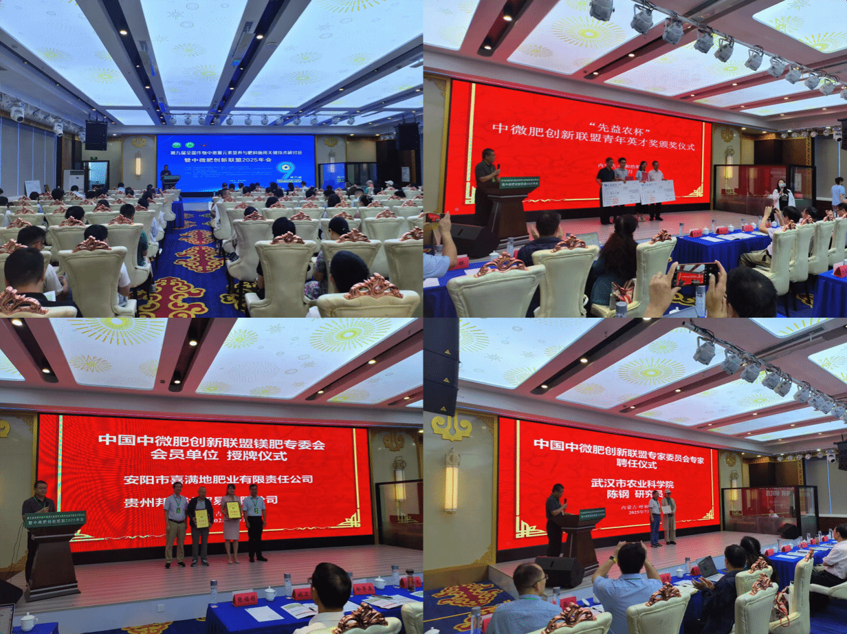 2025年7月30日至31日,作为“第三十届养分资源高效利用与农业绿色发展全国协作网学术大会”的重要分会的“第九届全国作物中微量元素营养与肥料施用关键技术研讨会暨中微肥创新联盟2025年会”在内蒙古呼和浩特胜利闭幕。来自全国相关高等院校、科研院所及企事业单位约300名代表参加了会议。24个来自产学研领域的精彩报告,全方位展示了中微量元素营养及中微肥领域的最新科研成果、产品创新等。会议由养分资源高效利用全国重点实验室、中国农业大学国家农业绿色发展研究院联合主办,内蒙古农业大学、华中农业大学微量元素研究中心、中国中微肥产学研创新联盟等承办, 武汉市农业科学院、武汉新壹禾生态环境检测有限公司、广州市先益农农业科技有限公司、上海思卫特生物科技有限公司等支持。